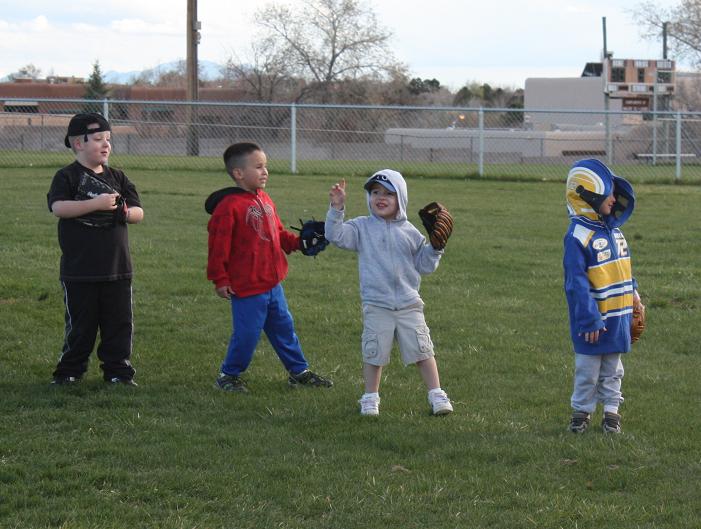 Jerome started tball last week and he LOVES it! It's a pretty big crowd with 4 three year olds and 4, 5 and 6 year old kids. It's pretty funny to watch the younger ones because they get so distracted (Jerome included) with the birds, butterflies and chasing their shadows. Those poor coaches really have their hands full, but they are so good with the kids and they do their best to make sure that all the kids are having fun.